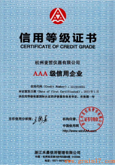 杭州麥哲儀器有限公司(原杭州大成光電儀器有限公司)是一家專業(yè)生產(chǎn)糧油食品檢測儀器的公司,長期致力于糧油食品檢測儀器的研發(fā)、生產(chǎn)和銷售。經(jīng)過多年努力,麥哲儀器自主創(chuàng)新,已經(jīng)成為從事小麥糧油檢測儀器行業(yè)的佼佼者,也因此獲得了得了根據(jù)國際認(rèn)定的評級服務(wù)體系審定的信用等級證書。這標(biāo)志著公司在企業(yè)信用建設(shè)獲得社會信用評價(jià)方面取得了實(shí)質(zhì)性的成果,必將進(jìn)一步增強(qiáng)企業(yè)的市場競爭力。
