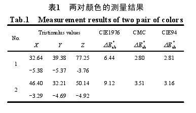 色差是樣品質(zhì)量檢測與評定的一個(gè)重要指標(biāo),由于色差公式選擇的不同,色差值也可能出現(xiàn)很大的不同。例如,表 1 列出了兩對顏色分別用 3 種色差公式測量的結(jié)果,可以看出,使用不同的色差公式測量的色差結(jié)果差別很大,很有可能給測試帶來誤判。因而在測量色差時(shí),色差公式的選擇同樣也要重視。