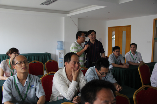 圖為:生產(chǎn)部主任上臺(tái)分享講座收獲