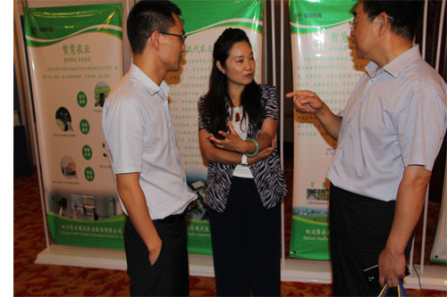 農業部科教司司長唐珂、浙江省農業廳副廳長王建躍、安徽省農委副巡視員胡桂芳等領導也先后蒞臨托普云農農業物聯網平臺成果展示區,對物聯網的應用等多方面議題進行交流。