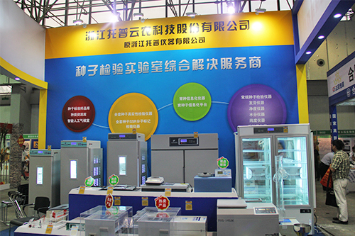 托普云農展出了自主研發生產的種子檢驗儀器和實驗室儀器。農業部種子管理局張延秋局長、杭大鵬書記一行,甘肅省種子管理局常宏局長一行先后蒞臨托普展區參觀指導,并與陳渝陽總經理進行交談,對托普云農在“互聯網+種業模式轉型變革”領域做出的成果給予肯定。