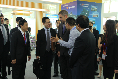 農交會期間,農業部余欣榮副部長、農業部市場與經濟信息司王小兵副司長一行蒞臨托普展區參觀指導。余副部長表示,農業物聯網技術應用除了現有的系統及硬件以外,還要與射頻技術緊密結合,提高物聯網的科技含量。屈冬玉副部長和斯洛文尼亞副總理一行也蒞臨托普展區,并與陳渝陽總經理親切交談。雙方就農業物聯網的研發推廣以及落地應用等問題進行交流。