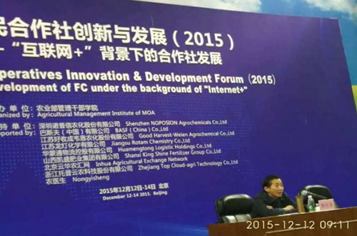 2015年12月12日,為探討“互聯網+”背景下農民合作社如何創新發展、轉型升級,農民合作社創新與發展(2015)——“互聯網+”背景下的合作社發展研討班在農業部干部管理學院舉辦。農業部副部長陳曉華出席研討班并就農村改革與農村政策問題做主旨報告。浙江托普云農科技股份有限公司(以下簡稱“托普云農”)是本次研討班支持單位并應邀參加,陳渝陽總經理出席。